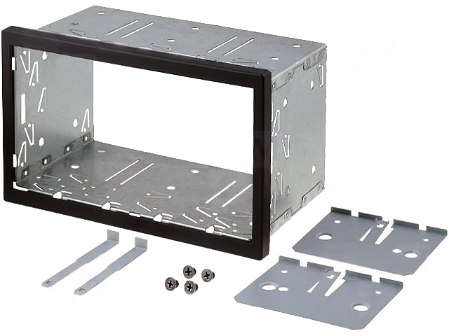 Pusstaltis 2DIN automagnetolai su isemimo raktais ir plastmasiniu apdailos remeliu.
