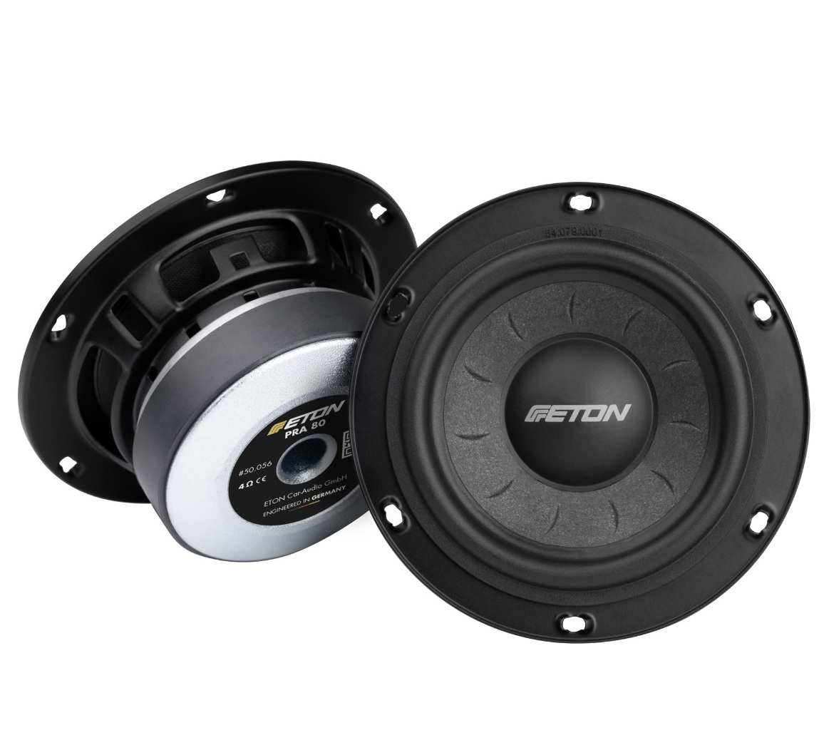 Eton PRA 80 – tai aukštos kokybes 80 mm (3 coliu) vidutiniu dazniu garsiakalbis, skirtas 3 juostu automobiliu garso sistemoms. Del tikslaus dazniu atkurimo, tvirtos konstrukcijos ir aukšto jautrumo, šis modelis yra idealus papildymas tiems, kurie siekia aiškesnio vokalo ir naturalesnio skambesio.